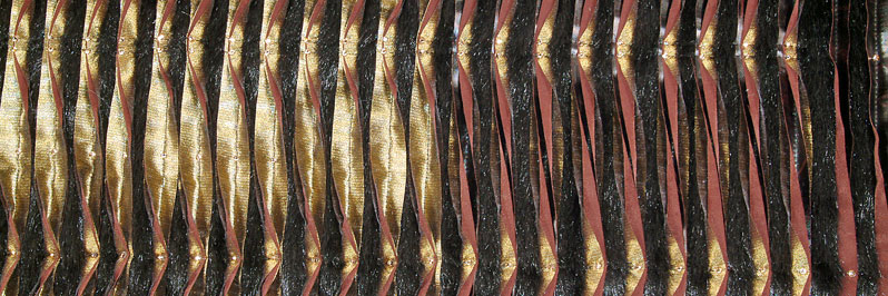Karina Thompson makes textile wall hangings and framed wall pieces for private interiors and public spaces. Using stitch, slashing and heat bonding processes she creates beautiful surfaces that bring colour and atmosphere to private homes and public spaces. Her innovative use of materials allows her to create textiles with texture and warmth that convey a feeling of tranquillity, vibrancy or opulence to any room.